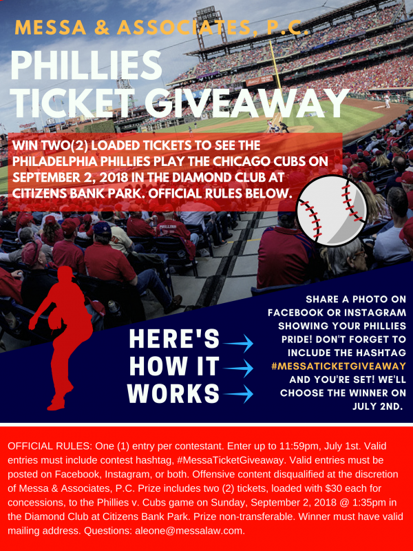 free phillies tickets, free tickets, messa, messalaw, personal injury law, phillies tickets, ticket contest, win free phillies tickets, win phillies tickets