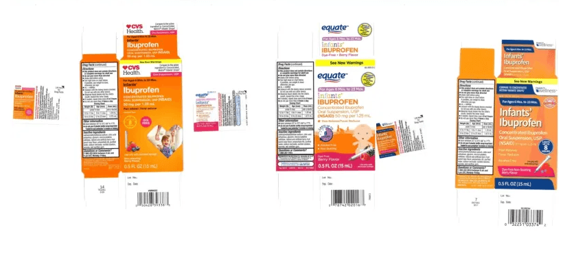 The recalled product, a pain reliever and fever reducer, was sold in .5oz bottles and labeled “Infants’ Ibuprofen Concentrated Oral Suspension.” The product is sold at Walmart under the “Equate” label, at CVS under the “CVS Health” label, and at Family Dollar under their “Family Wellness” label.
